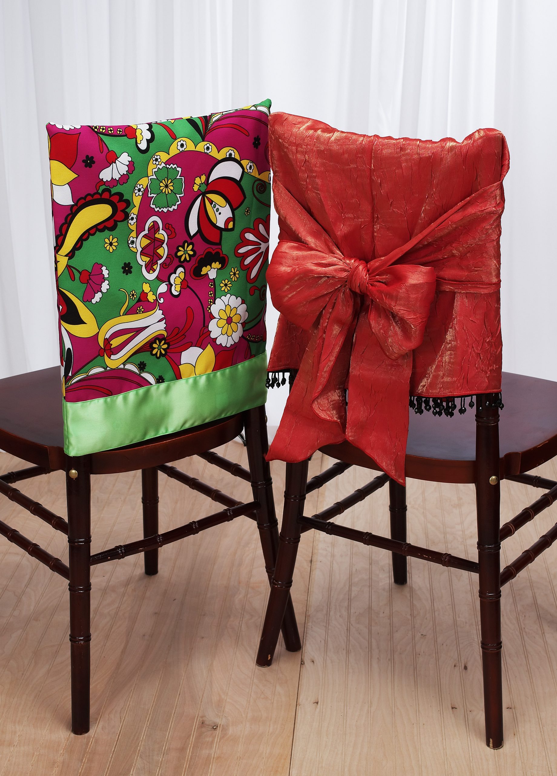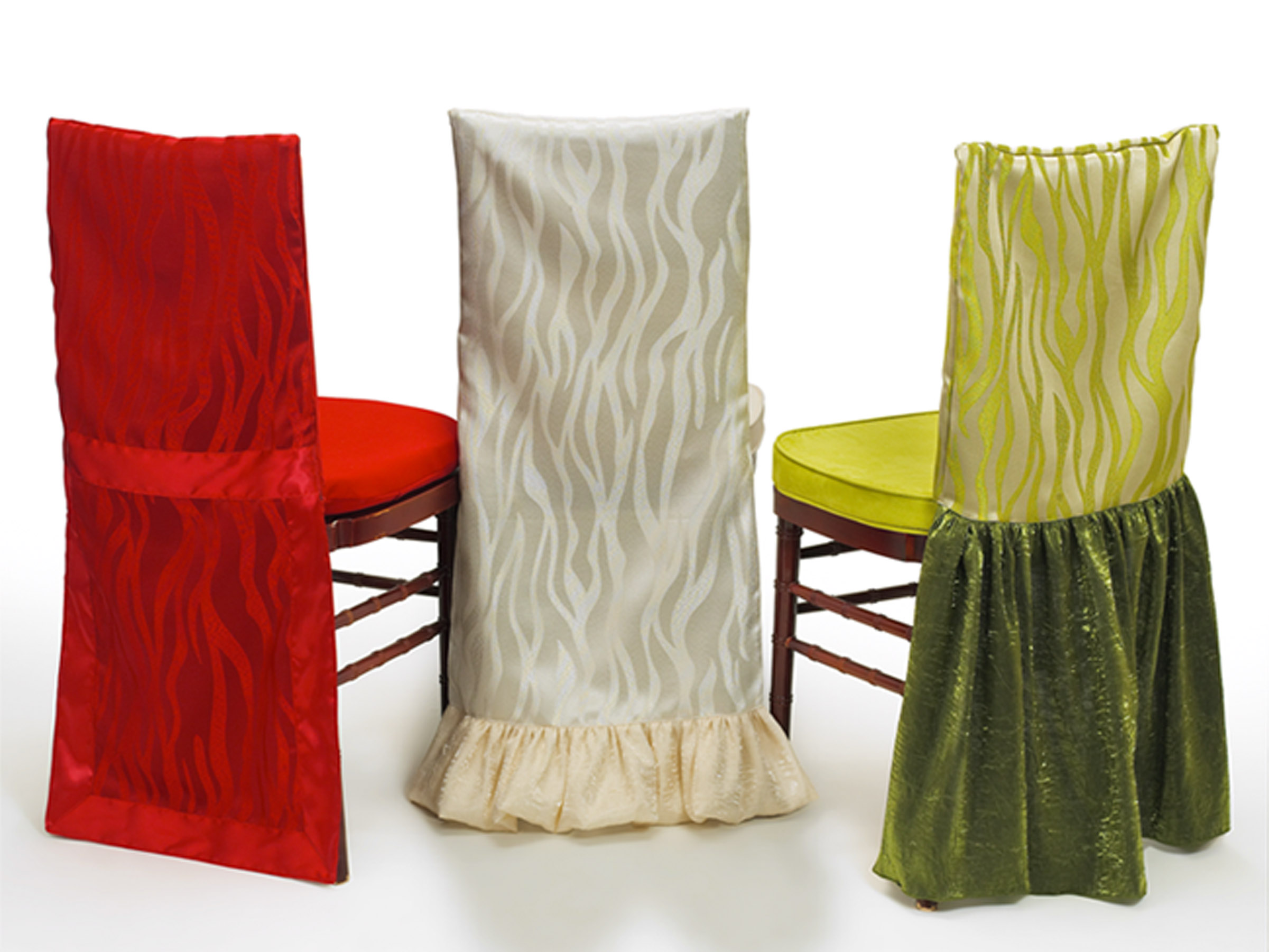 Chair Covers are a great way to protect your chairs while adding a stylish touch. These highly customizable decor options come in a variety of styles, sizes and fabrics. Our styles range from basic slip over covers to custom pleating, piping and bottom flairs made to fit your specific chair.